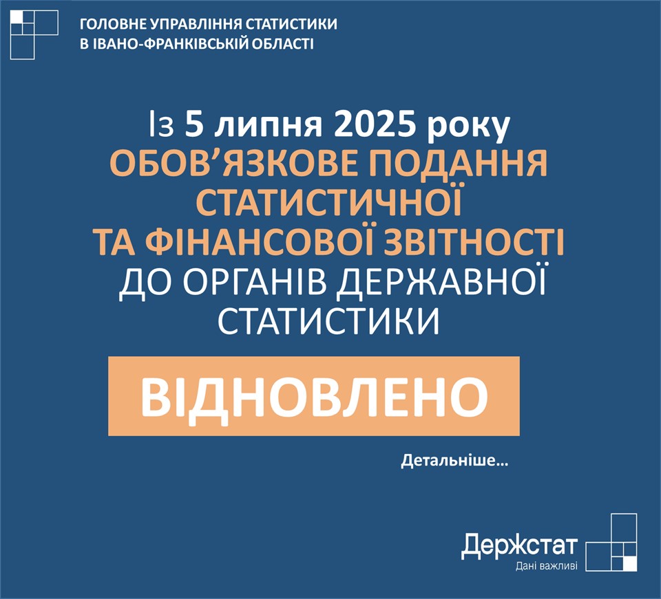 Із 5 липня 2025 року подання статистичної та фінансової звітності знову є обов’язковим для всіх підприємств, установ, організацій та підприємців, які залучені до державних статистичних спостережень.