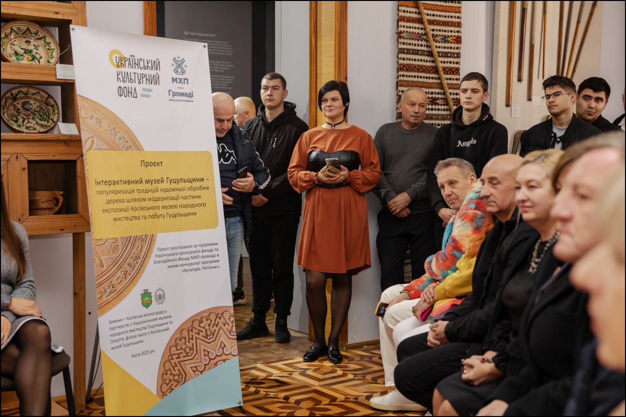 Простір створено в межах проєкту «Інтерактивний музей Гуцульщини – популяризація традицій художньої обробки дерева шляхом модернізації частини експозиції Косівського музею народного мистецтва та побуту Гуцульщини».