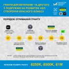 За ініціативи Прем’єр-міністра Міністерство економіки України у співпраці з Мінветеранів, Мінцифрою, Мінюстом, іншими державними установами та ветеранською спільнотою запустило грантову програму із фінансування створення, або розвитку власного бізнесу ветеранами війни.