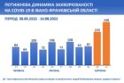 По Івано-Франківській області зареєстровано станом на 01.09.2022 року всього 187297 підтверджених випадків, з яких 1026 нових випадків за останній місяць серпень; інтенсивний показник захворюваності становить 13690,33 на 100 тис. населення.